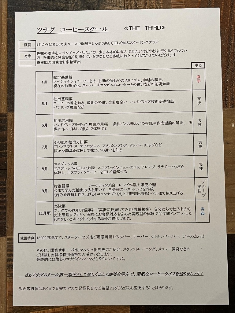 さてさて、大人気中のツナグコーヒースクール3期生の募集を開催したいと思います。