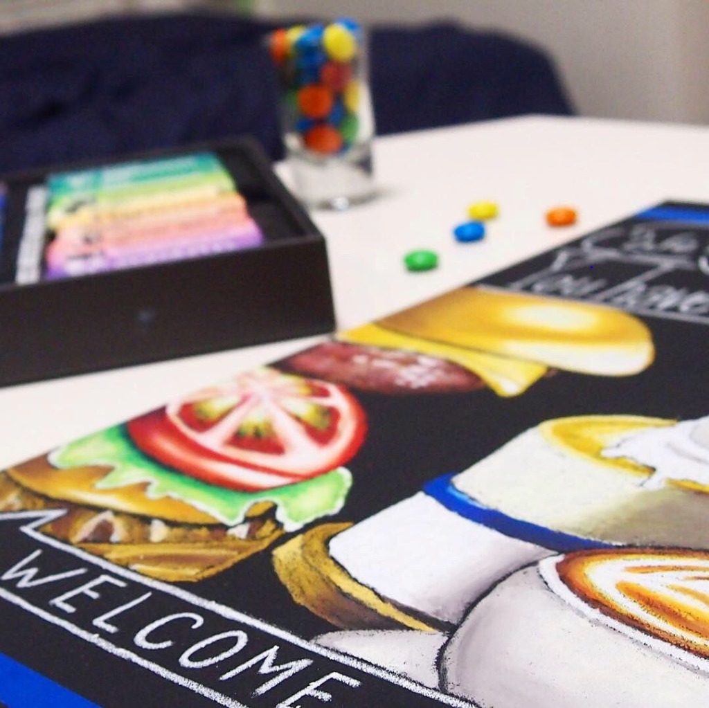 当店のチョークアートでは自分の好きなモノやインテリア、マルシェ看板、ロゴマークなどなど