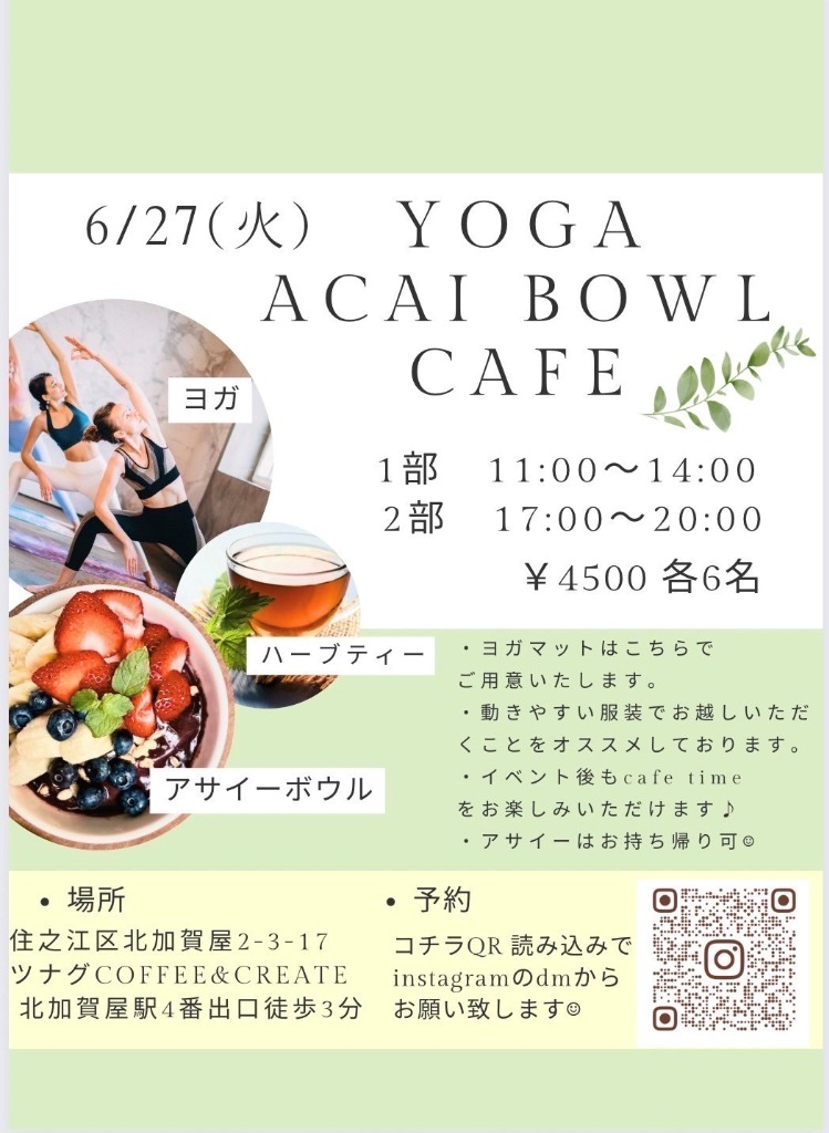 六月はYOGAとコラボ。アサイーボウル、ハーブティーもSETで